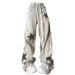 This aesthetic oversized jeans features bold star patches. distressed fabric details. and an adjustable drawstring