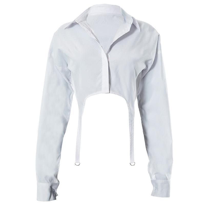 Turnover collar button long sleeve solid crop top